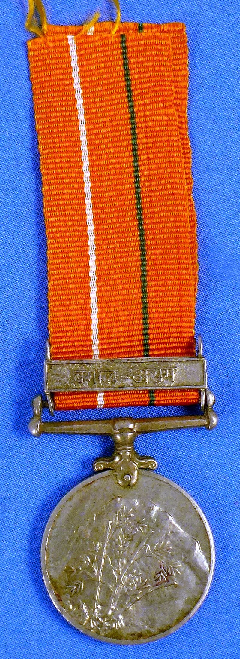 The Indian medal was awarded with various area clasps following 1 year of deployment in harsh climatic and geographic regions of India, to include Deserts, Jungles, and the Himalaya region. The edge is numbered and named to a member of the Sikh Light Infantry.