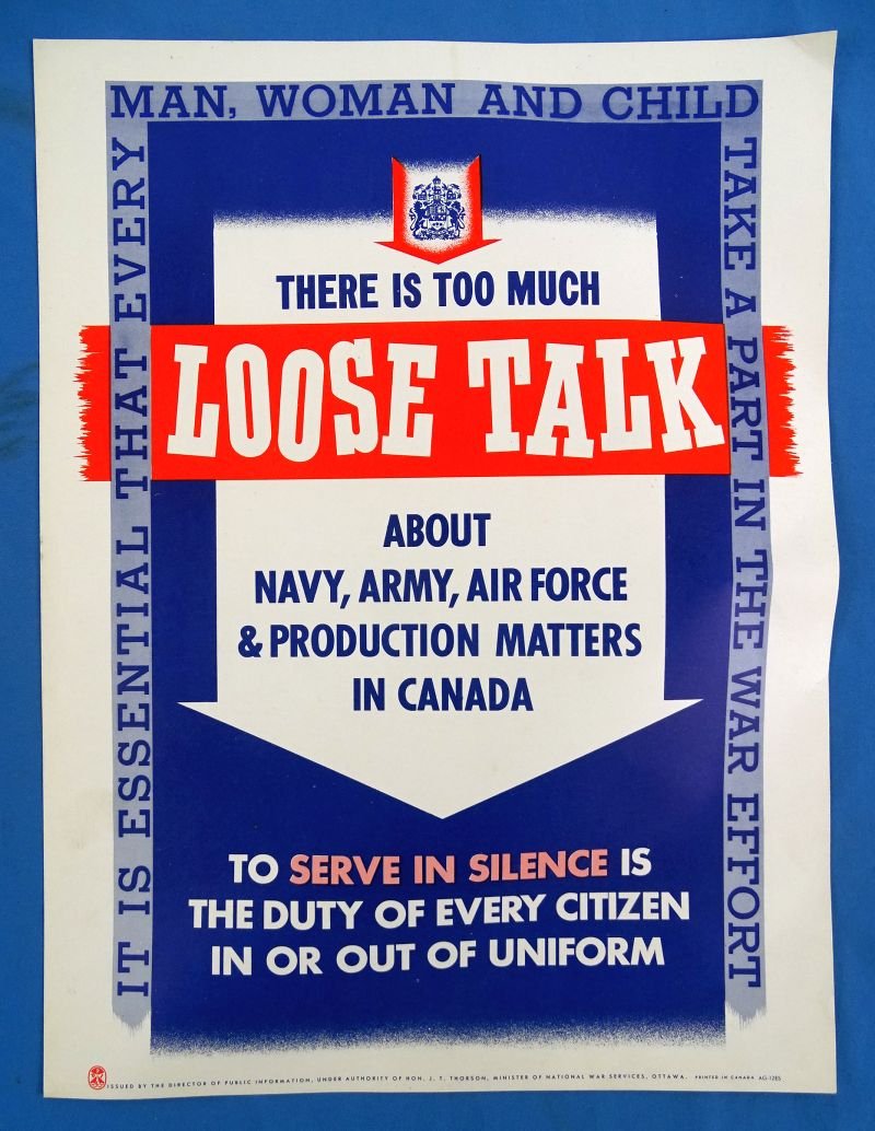 WWII Canadian Window Card Poster: 'There is Too Much Loose Talk'