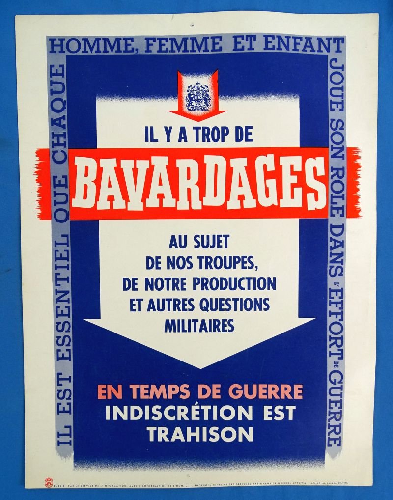 WWII Canadian French Language Window Card Poster: 'There is Too Much Loose Talk'