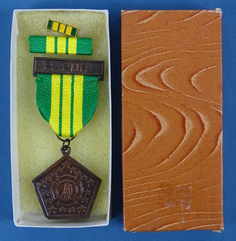 Excellent condition, with ribbon bar and enamel lapel badge. The lid of the box bears a printed label with the name of the medal.