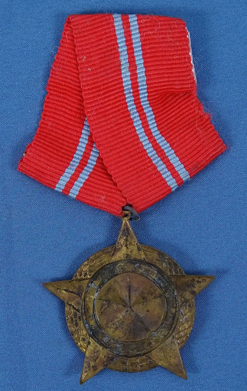 The medal has a dark, uncleaned patina, on variant ribbon.