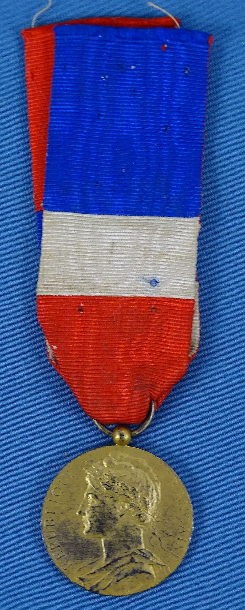 The medal shows wear to the gilt finish. The ribbon shows soiling and has a hole in the reverse.