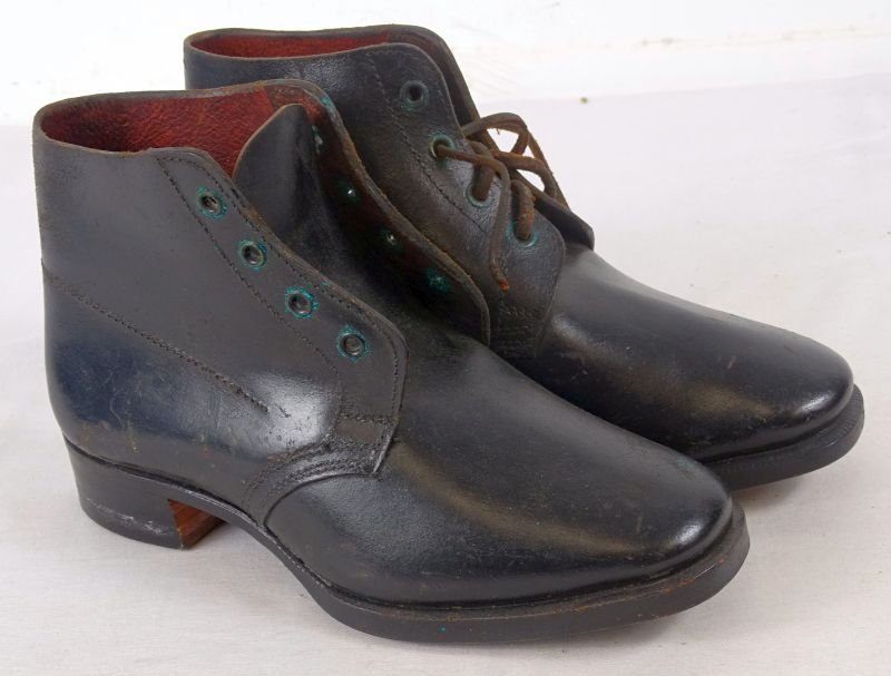 Original US Army Model 1872 brogans in essentially unissued condition, showing a very fine polish and exhibiting only minor scuffs from storage. One of the boots is lacking the laces. The boots are approximately 10-1/2 inches long when measured on the exterior sole from toe to heel.