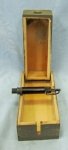 Original era manufacture. A German inspired, narrow wooden box with a pale green painted exterior, with a deactivated brown bakelite fuze. Very sound, US sales only.
