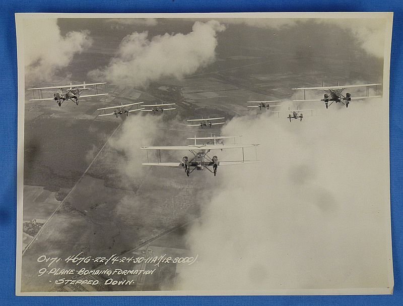 Large Photograph of Nine US Army Biplane Bombers