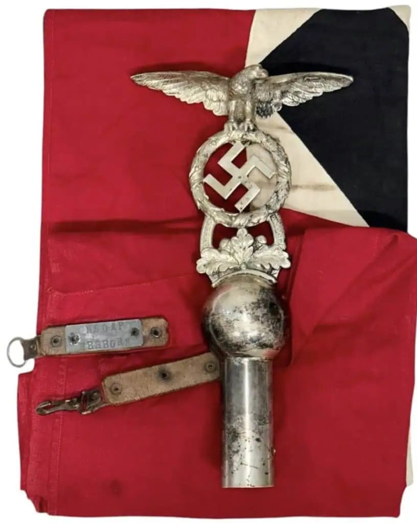VERY RARE OUTSTANDING Original German Third Reich Eagle Pole Topper NSDAP Herborn Town Flag Standarte Certified