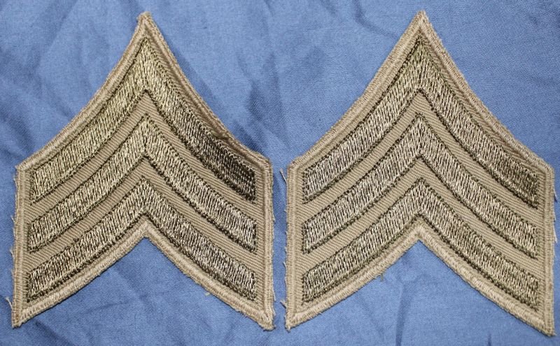 Pair WWII Khaki Sergeant Chevrons