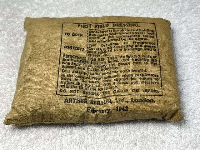 48) Good Original WW2 British Army First Field Dressing Dated 1942