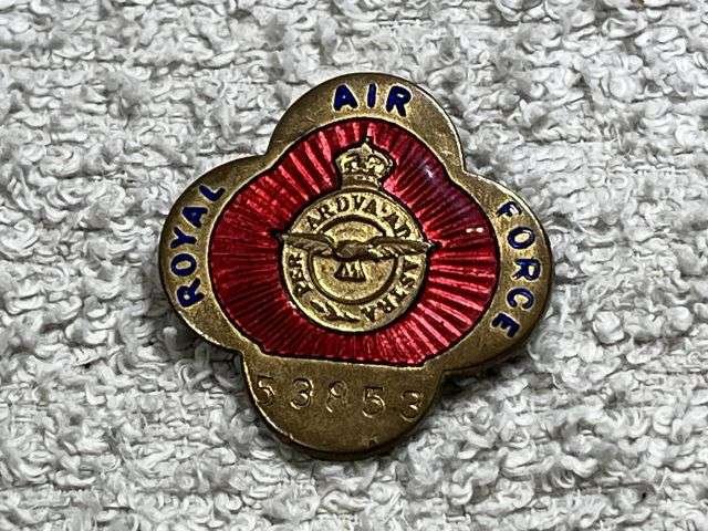 20) Excellent Original WW2 RAF War Workers Red Enamel Lapel Badge