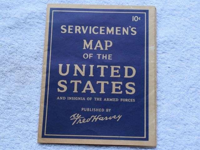 59) Excellent Original WW2 US Printed Servicemen's Map of The United States & Insignia of Armed Forces