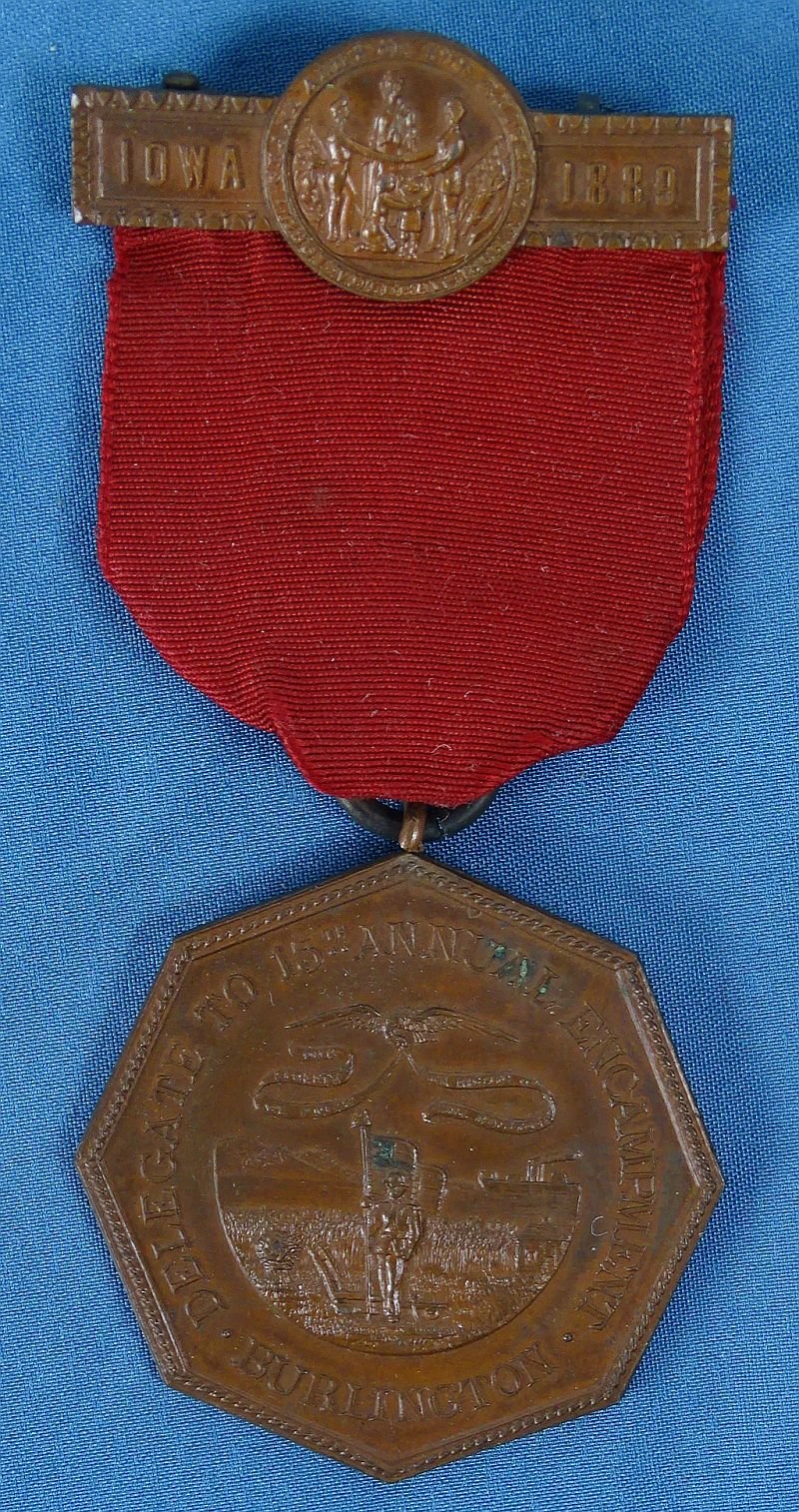 1889 GAR Iowa 15th Annual Encampment Delegate Badge