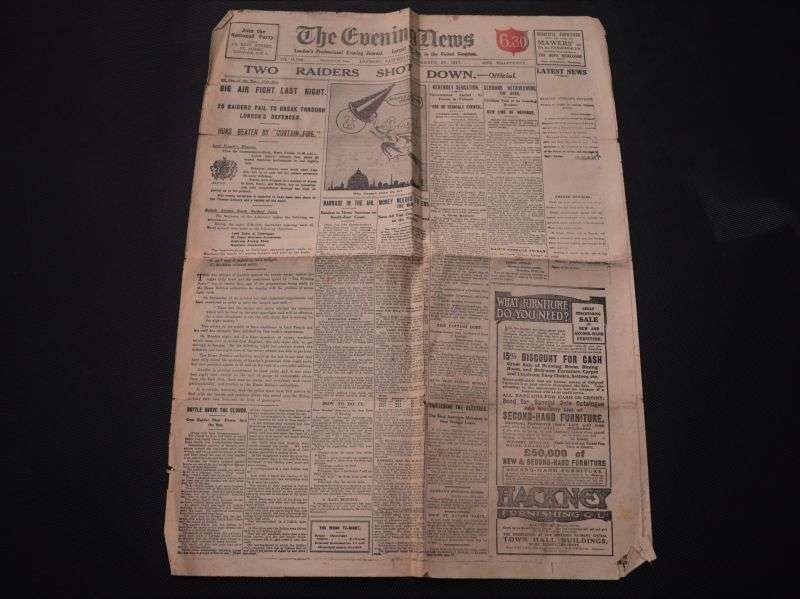 115) Tatty Original WW1 The Evening News, London's Newspaper September 29th 1917