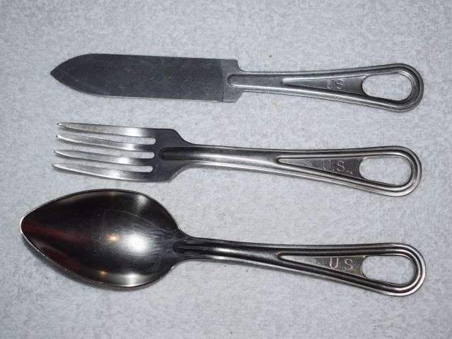 35) Original WW2-1950s US Military Issue Cutlery Set Knife Fork & Spoon