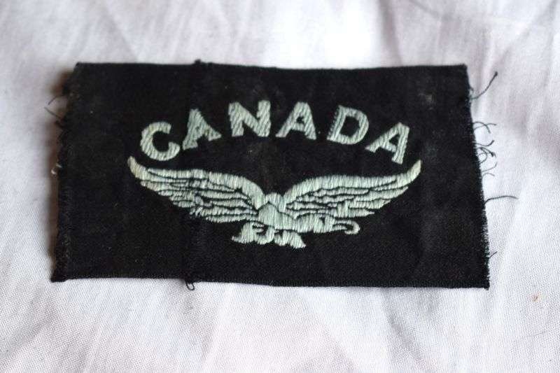 37) Excellent Original WW2 RCAF Canada over Right Facing Albatross Woven Cloth Shoulder Title