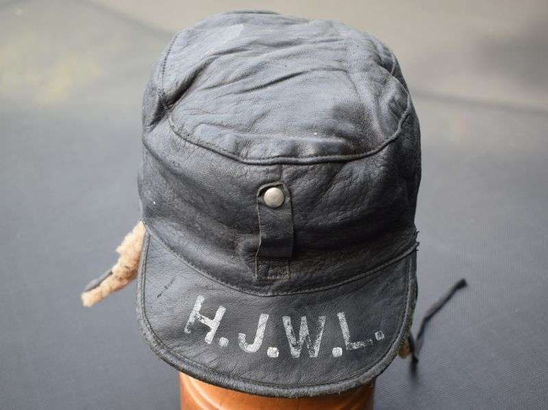 133) Unidentified 1940s-1950s? Leather Peaked Cap with Initials To The Peak