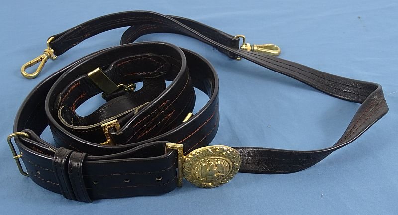 Excellent condition, with supple leather and both sword suspension straps in place. The belt is maker marked by Hilbon-Hamburger and marked as a size 38.