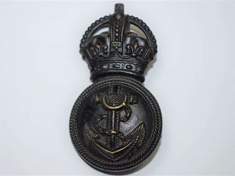 99) Excellent Original WW1 RND Petty Officers Blackened Metal Cap Badge
