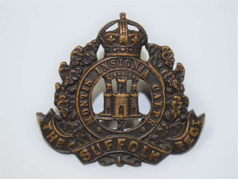 102) Excellent WW1 WW2 The Suffolk Regiment Officers Bronze Cap Badge