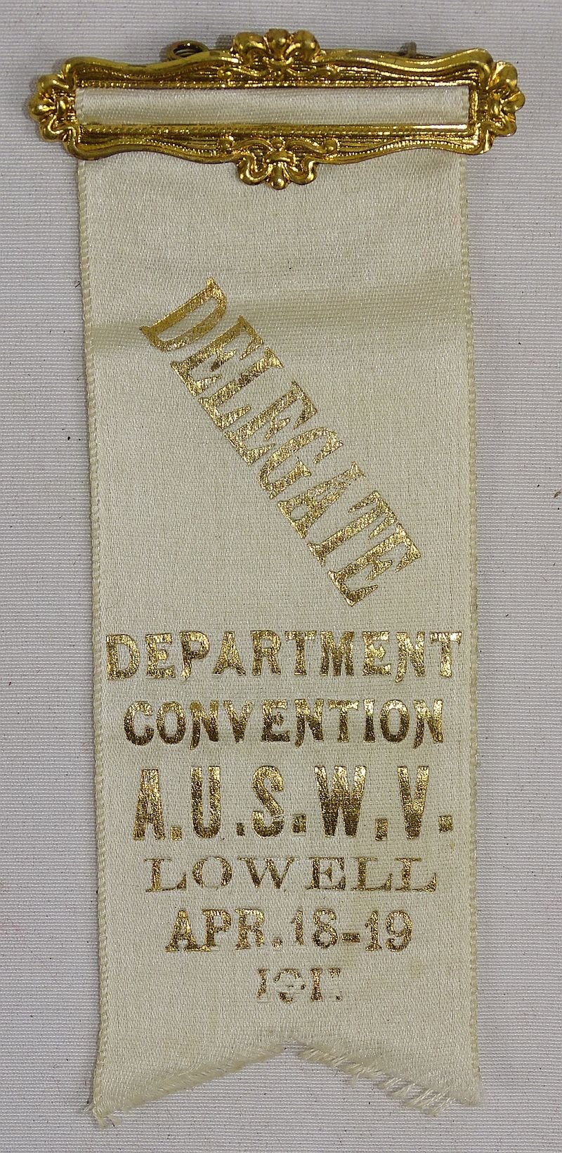 1911 United Spanish War Veterans Department Convention Lowell, Massachusetts Delegate Ribbon