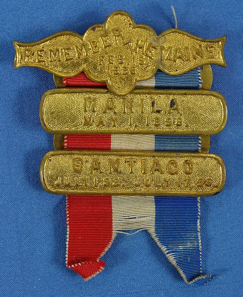 Spanish American War Veteran Badge with 'Manila' and 'Santiago' Bars
