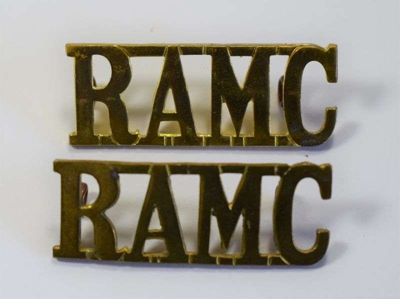 38) Original WW1 WW2 Royal Army Medical Corps Shoulder Title Pair