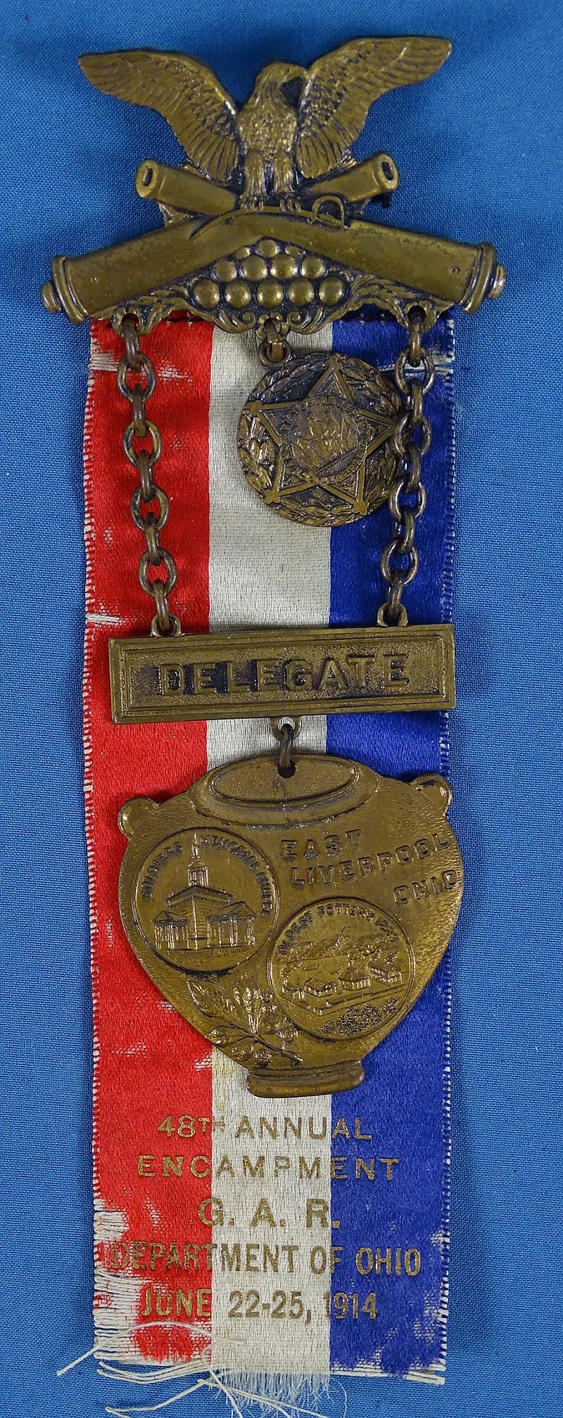 Approximately 1-1/2 inches by 5-3/4 inches. The manufacturer tag is on the revere. The ribbon shows some wear and separations.