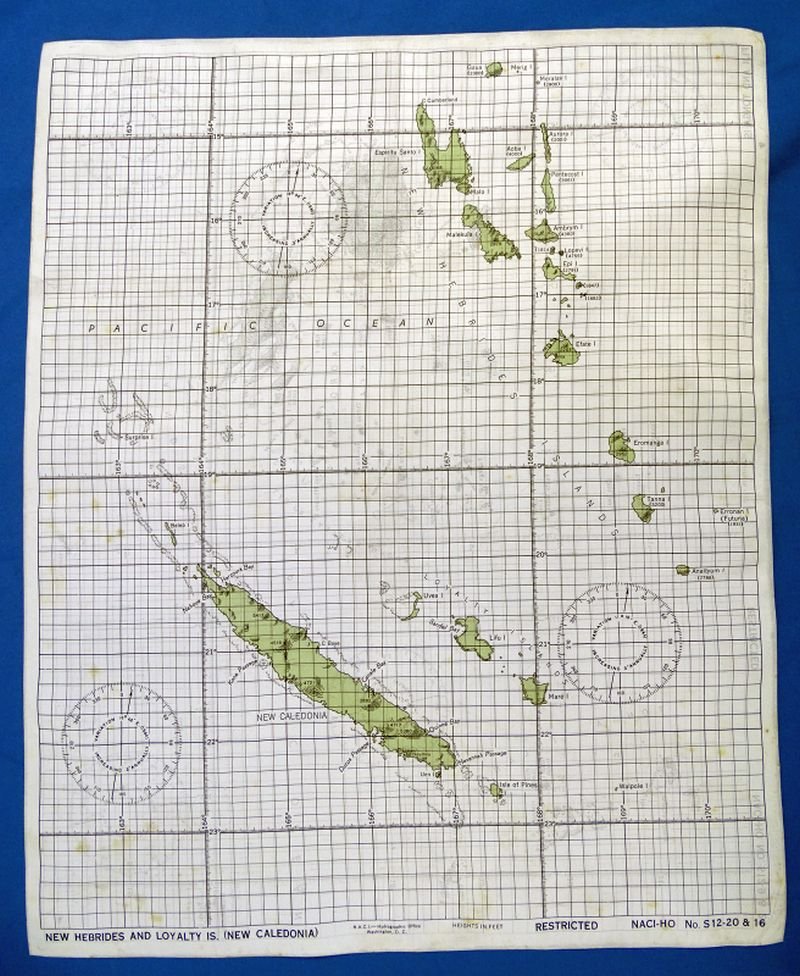 WWII Silk Escape Map of Fiji, Tonga Islands, New Hebrides, and New Caledonia