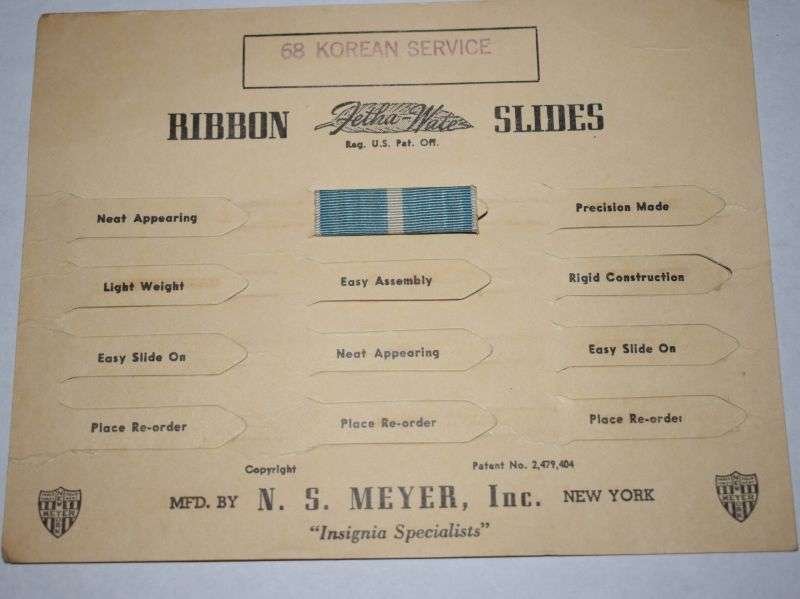 67) Original US Military Korean Service Ribbon Slide Bar on Factory Card Display