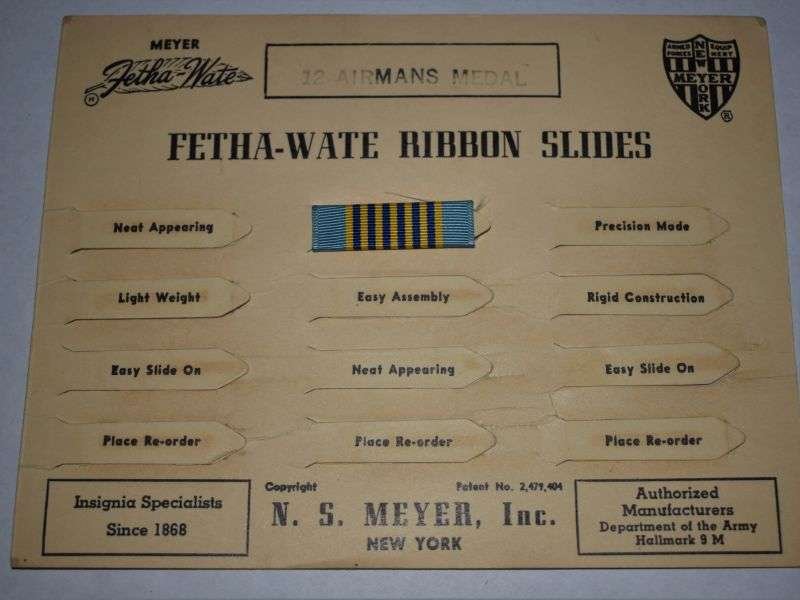 69) Original US Military Airmans Medal Ribbon Slide Bar on Factory Card Display