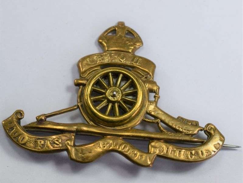 75) Well Polished WW1 WW2 Royal Artillery Cap Badge Converted to Brooch