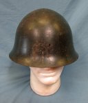 Original era manufacture. A solid base for a restoration project. Dark gray finish overall, two of the original rivets remain, as do the suspension loops on the interior. No helmet star.