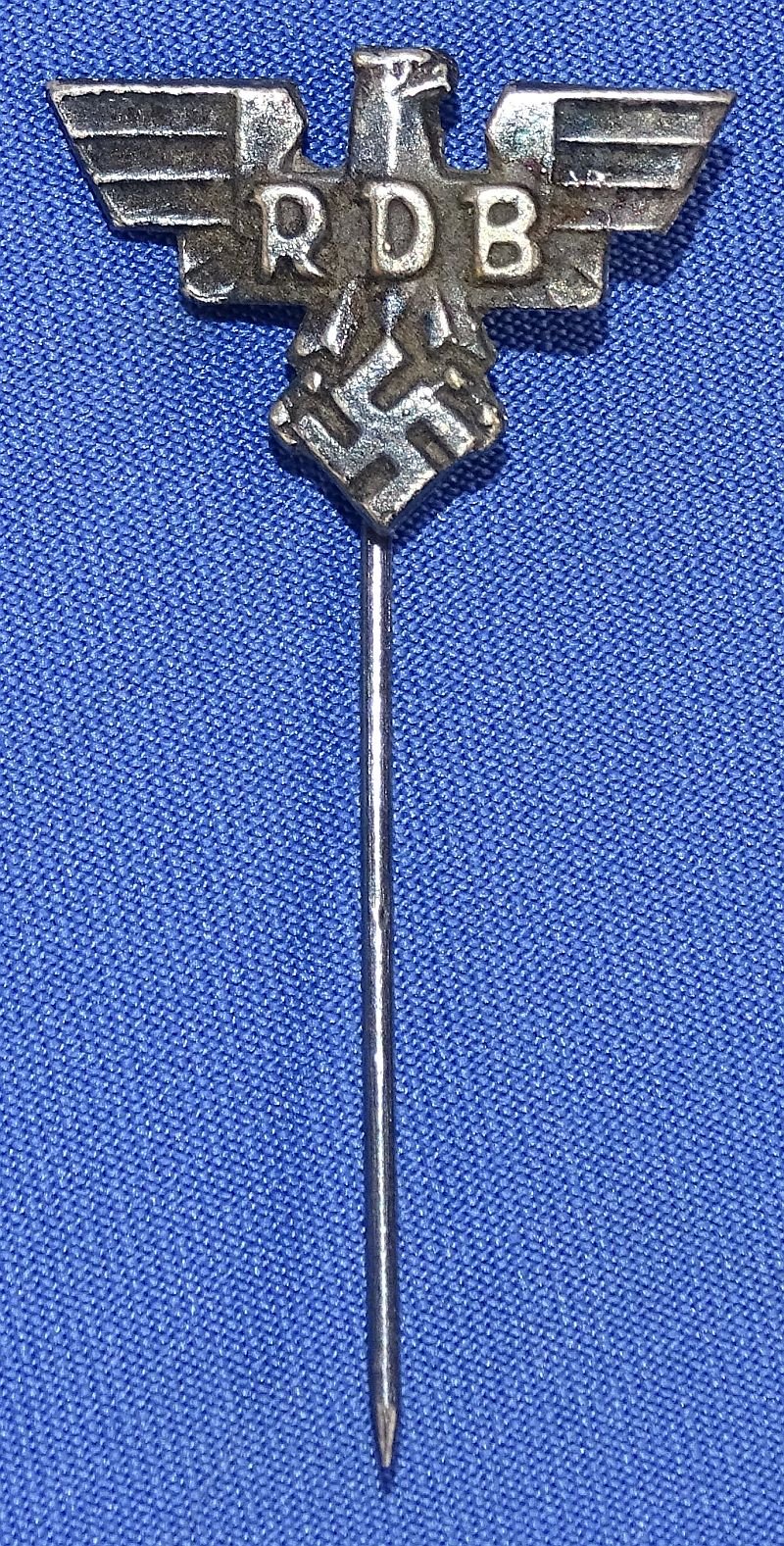 A stickpin of the Reichsbund der Deutschen Beamten. The reverse shows a maker mark, 7/8 inch wingspan.