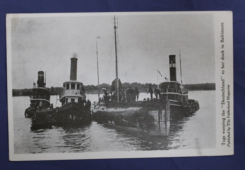 WWI German U Boat 'Deutschland' with Tugs in Baltimore Postcard