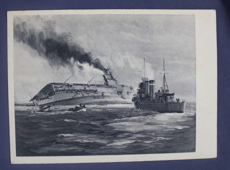 WWII German U Boat Sinking HMS Courageous Postcard
