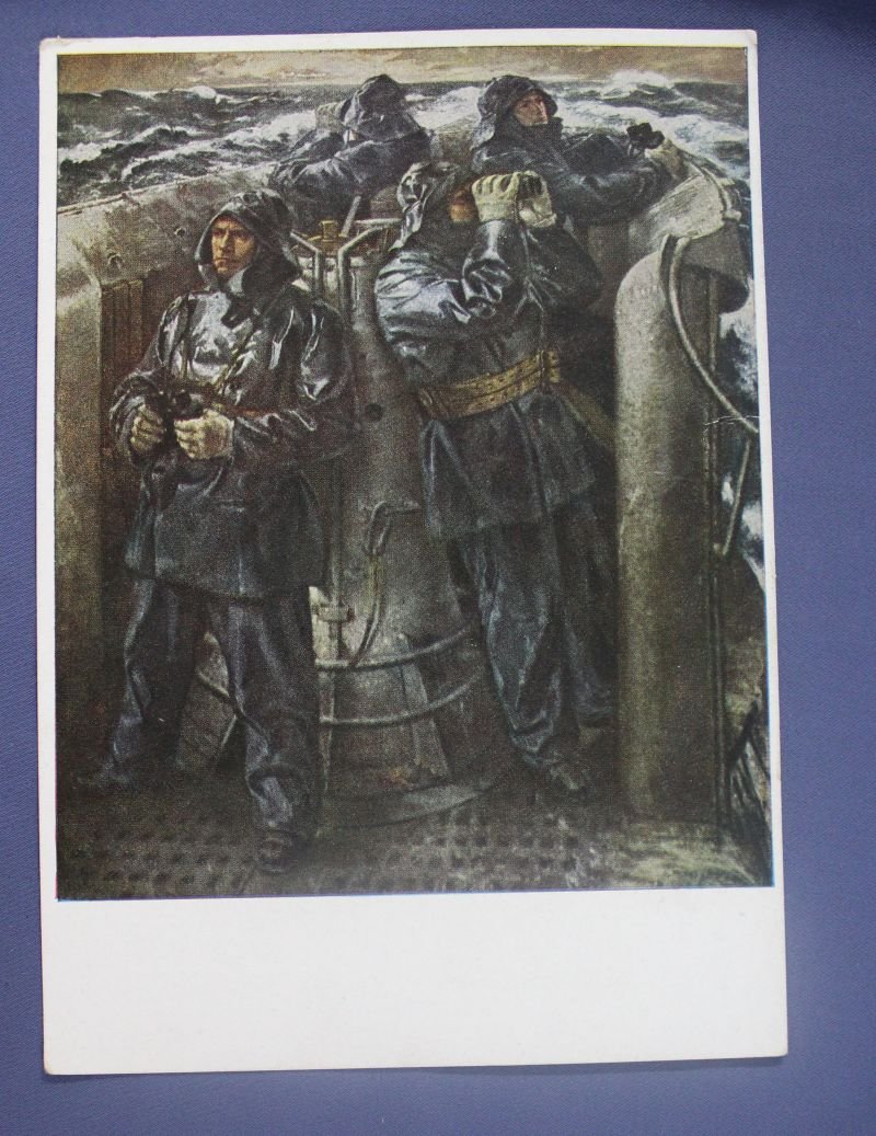 WWII German Postcard U Boat Lookouts on Surface