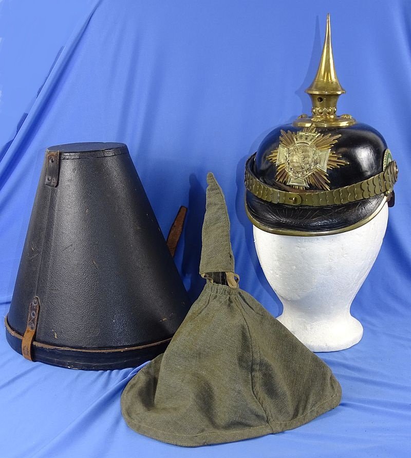 Named Imperial Saxon Reserve Officer Pickelhaube with Case and Cloth Combat Cover