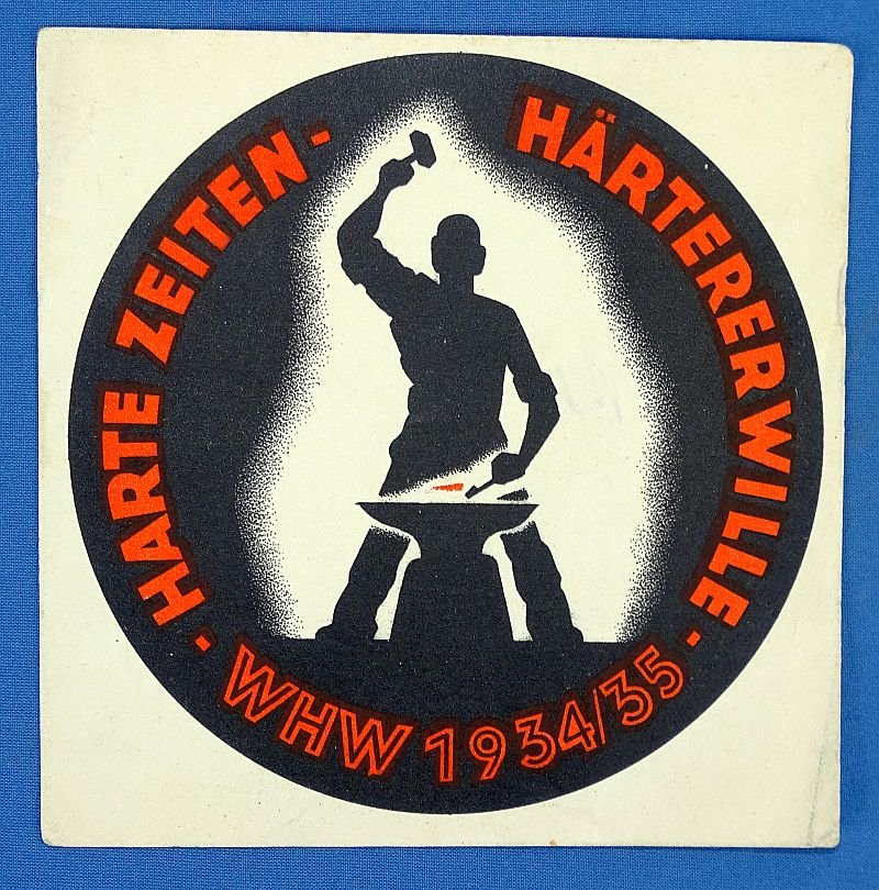 1934-1935 Winterhilfswerk Donation Can Label: Harte Zeiten – Harterer Wille