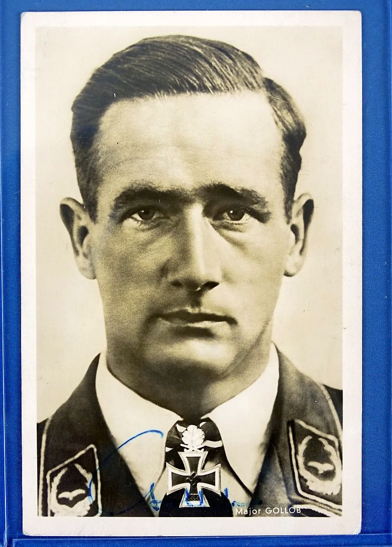 Signed Photo Postcard of Luftwaffe Fighter Pilot Gordon Gollob, Recipient of the Knight's Cross with Oak Leaves, Swords and Diamonds