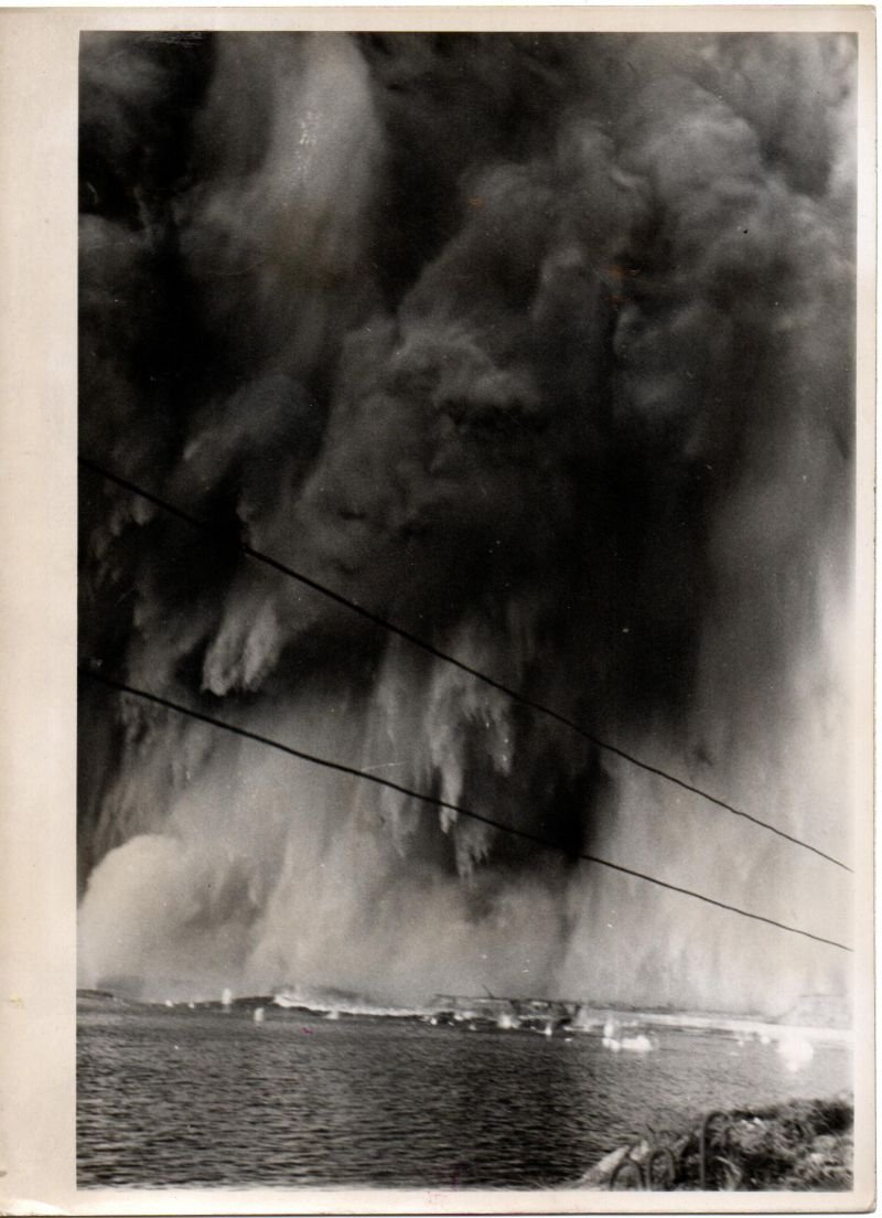Photograph Blowing Up The Port Of Cherbourg – June, 1944 – 5-1/4″ X 7″