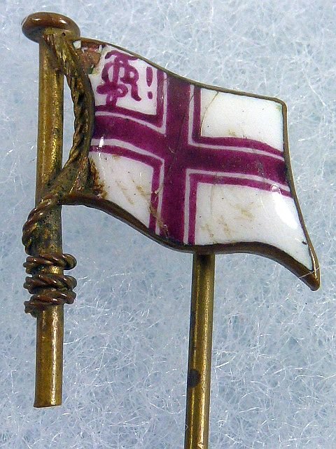 2 1/4 inches long on a knurled pin with some chips to the enamel flag.