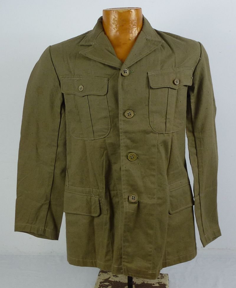 The olive green cotton tunic shows very few, if any, signs of actual issue or wear. The interior retains the Imperial Navy issue stamp. All buttons are present. Overall the tunic makes an excellent appearance.