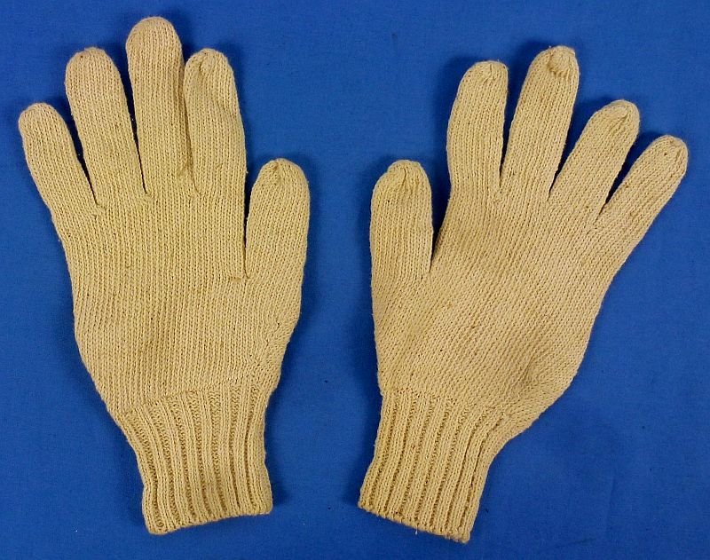 The white wool gloves show some soiling from age and use, but they are without holes or damage and in overall very good condition.