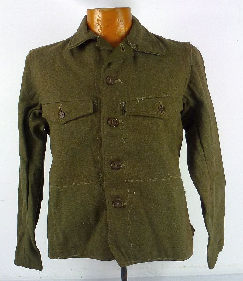 The unlined wool tunic shows no signs of ever having been issued or worn. The interior has issue stamps which include the date of 1945. Unused condition.