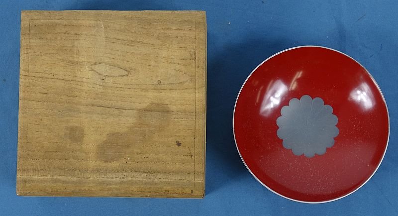 Large Boxed Japanese Sake Cup with Chrysanthemum