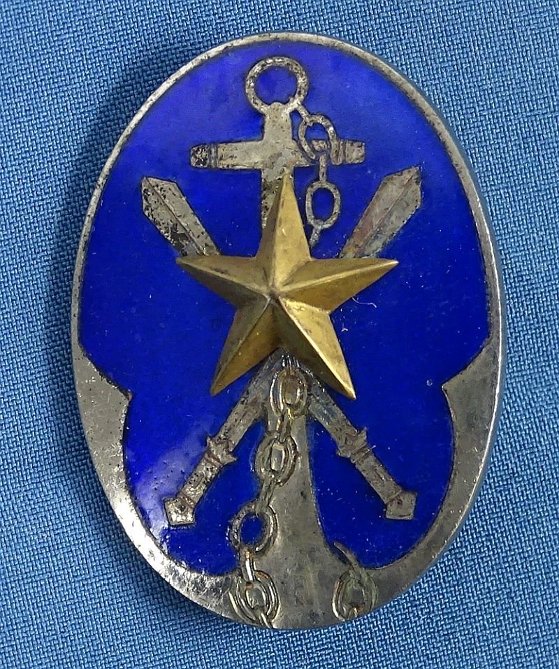 Approximately 1-1/8 inches long, with uncleaned patina. The blue badge was worn by advisors of the organization and honorary deliberative members. Excellent condition.