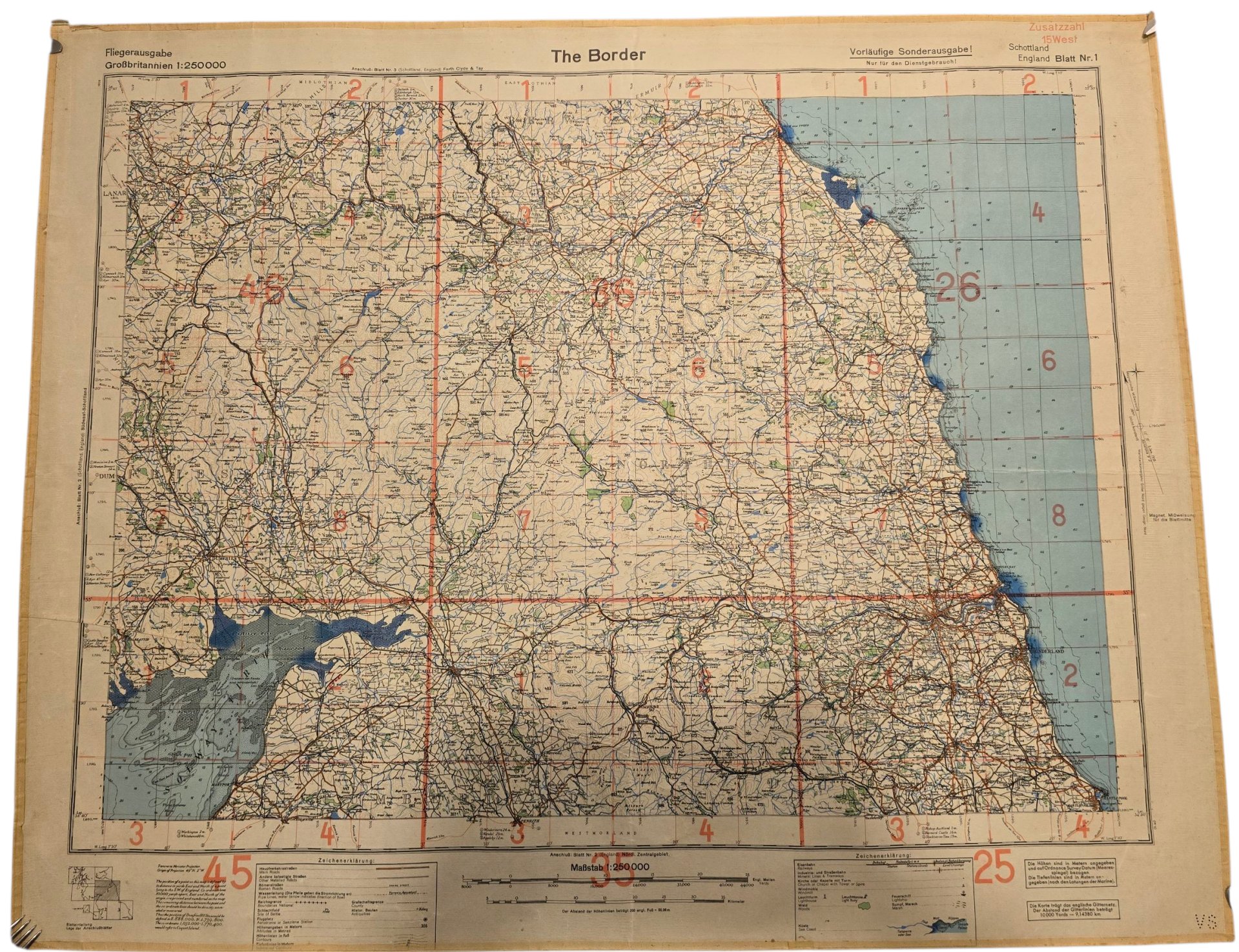 Original WW2 German Luftwaffe Map - Fliegerausgabe Great Britain England Nr. 1, The Border (1940)