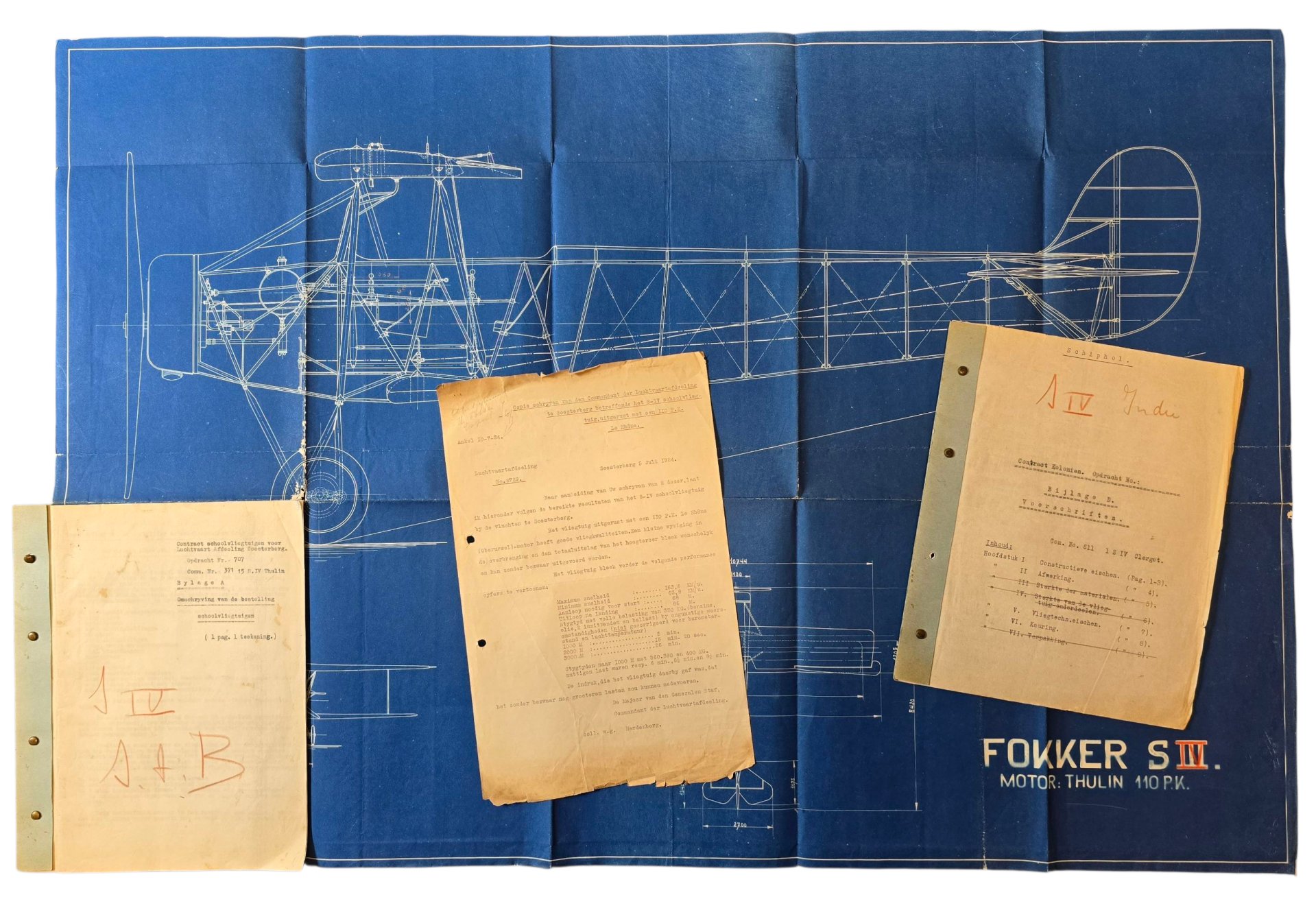 Original WW2 Dutch LVA Document - Fokker S IV airplane blueprint and contract Luchtvaartafdeeling Soesterberg (1924)