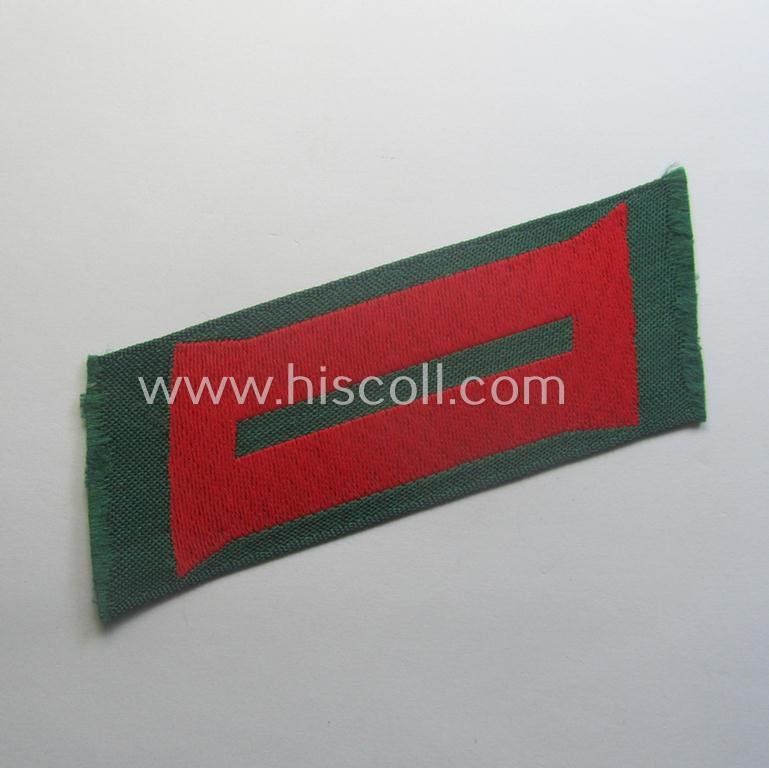 This is a very attractive - regrettably single but nevertheless still rarely encountered! - (entirely!) 'BeVo'-woven, EM-pattern 'Ostvölker'-collar-tab as as was specifically intended for usage by a member serving within the 'Deutsche Wehrmacht' (ie. within the 'Russian Liberation Army' or 'POA' which is Cyrilic for 'ROA') and that comes in an overall very nice- (ie. simply never used- ie. 'virtually mint-ie. unissued' and/or never tunic-attached-), condition. The collar-tab comes in a truly wonderful condition and was simply never used nor tunic-attached but does show some minimal age and/or minimal staining. It should be noted that these original, 'officially German-issued' collar-tabs as entirely executed in 'BeVo'-type weave (ie. being of the German manufacture by the company of 'BeVo'!) can easily be graded 'rare'. I deem that this attractive 'Ostvölker'- ie. 'Russian Liberation Army' or 'POA'-collar-tab is priced according to its unmistaken rarity and/or desirability!