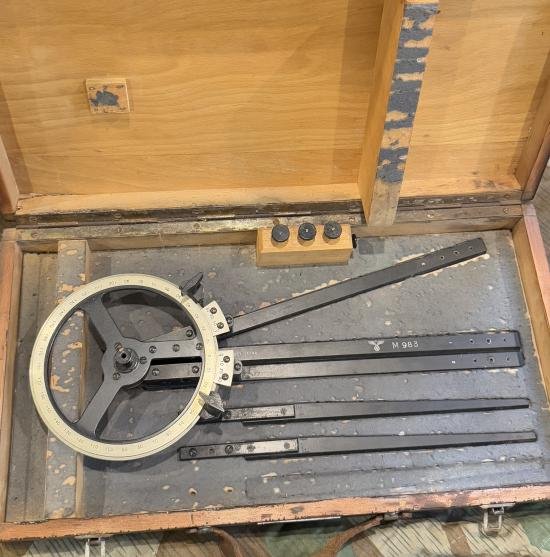 Large boxed KM large gun calculator instrument. kM eagle marked on the box and instrument. Good used condition.