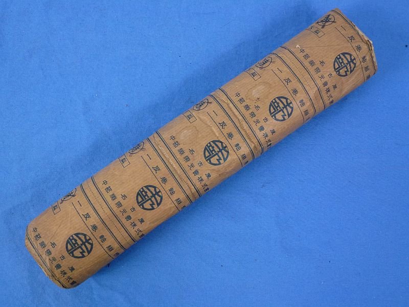 The wrapped tube of five bandages is approximately 11 inches long. The package shows signs of age, but it is complete and intact and in very good unused condition.